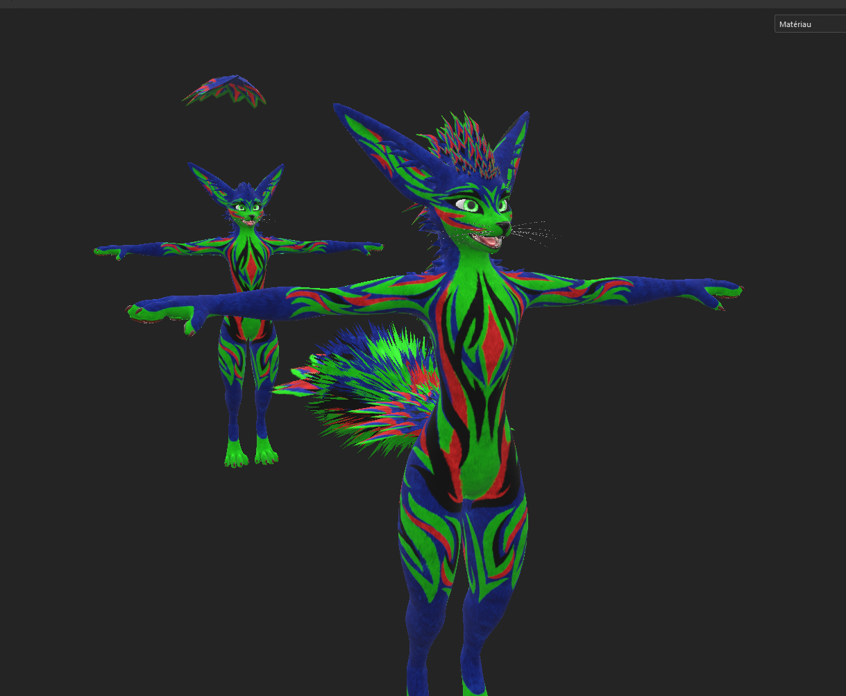 You can chose two main Body colors (Blue and green) , Line color (Black), One Emissive colors(Red), Eye color, Beans color, Claws Color